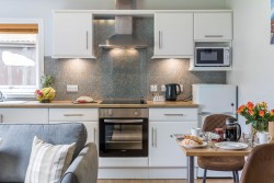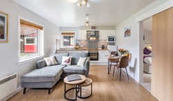 Newly refurbished chalet, cosy and comfortable semi-detached chalet, providing accommodation for one or two guests. King-size bed with en-suite shower room, open-plan lounge-kitchenette and dining area, entrance lobby.Parking close to the chalet.