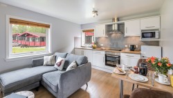 Built with true alpine flair and set among the beautiful birch trees and heather-clad grounds of High Range, each chalet is completely self-contained. The comfortable and spacious accommodation includes fully functioning kitchens, 43″ TV with over 200 freesat channels, DVD and hairdryer.